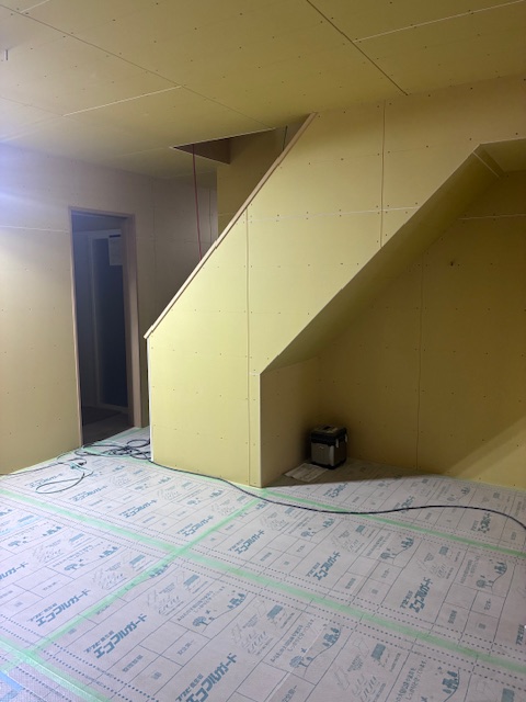 1階のボード張りが終わり、大工工事も終盤になりました!